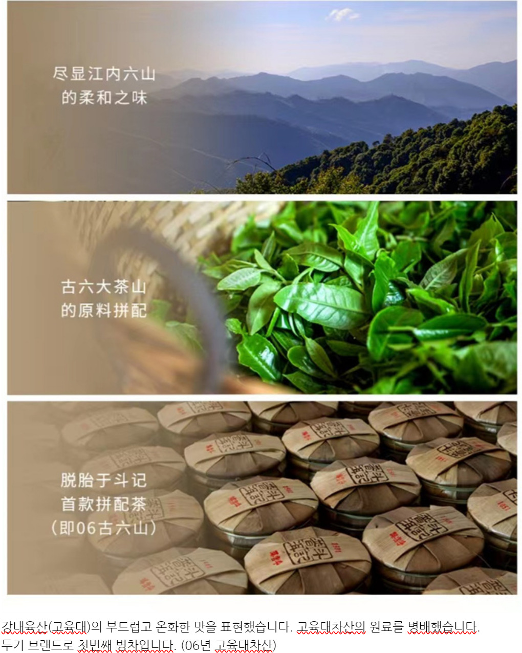 두기 보이차는 전부 1아2엽의 표준 채엽을 한 등급을 사용하여 제작합니다.