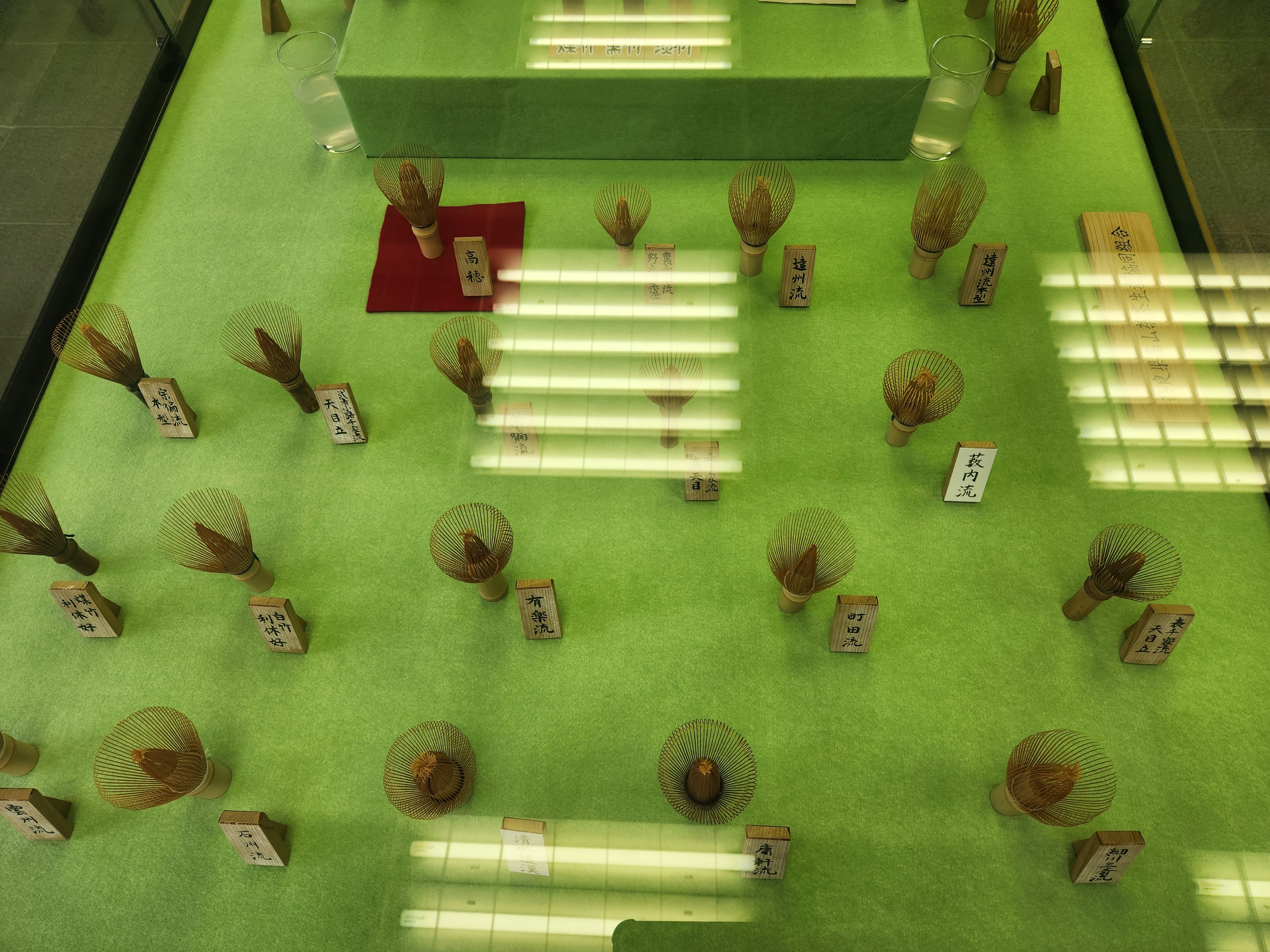 500년 전부터 이어온 전통으로 고품질 대나무에서 여러 개의 실 같은 바늘이 솔 형태가 될 때까지 원형으로 정교하게 나누면, 말차의 맛과 향을 최대한 끌어낼 수 있는