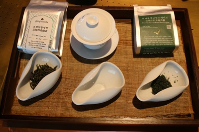 녹차를 주제로 시음을 시작하기 전에 한국의 보성덖음세작, 일본의 천지우지교쿠로세이로가 보이네요