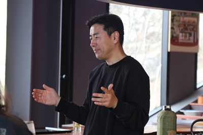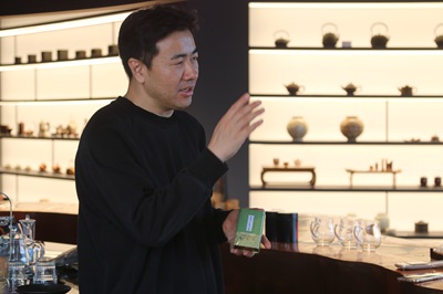 용정차에 대해 열정적으로 설명하시는 대표님입니다.