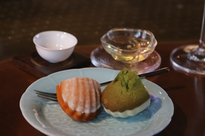 시음 중간에 제공된 공부차파크의 말차마들렌과 영귤마들렌입니다.