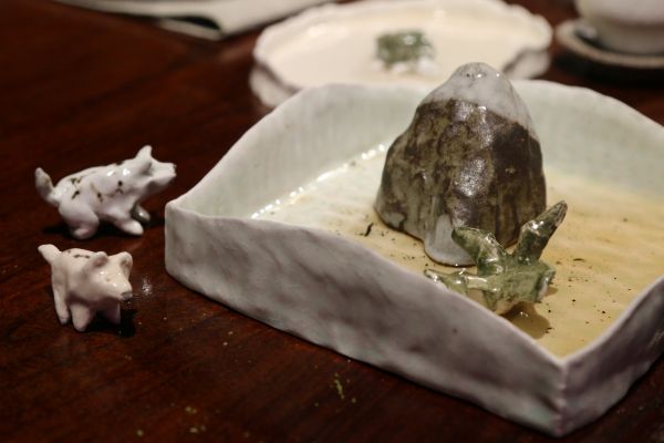 찻물을 부어 산이 잠기는 모습을 보기도 하고