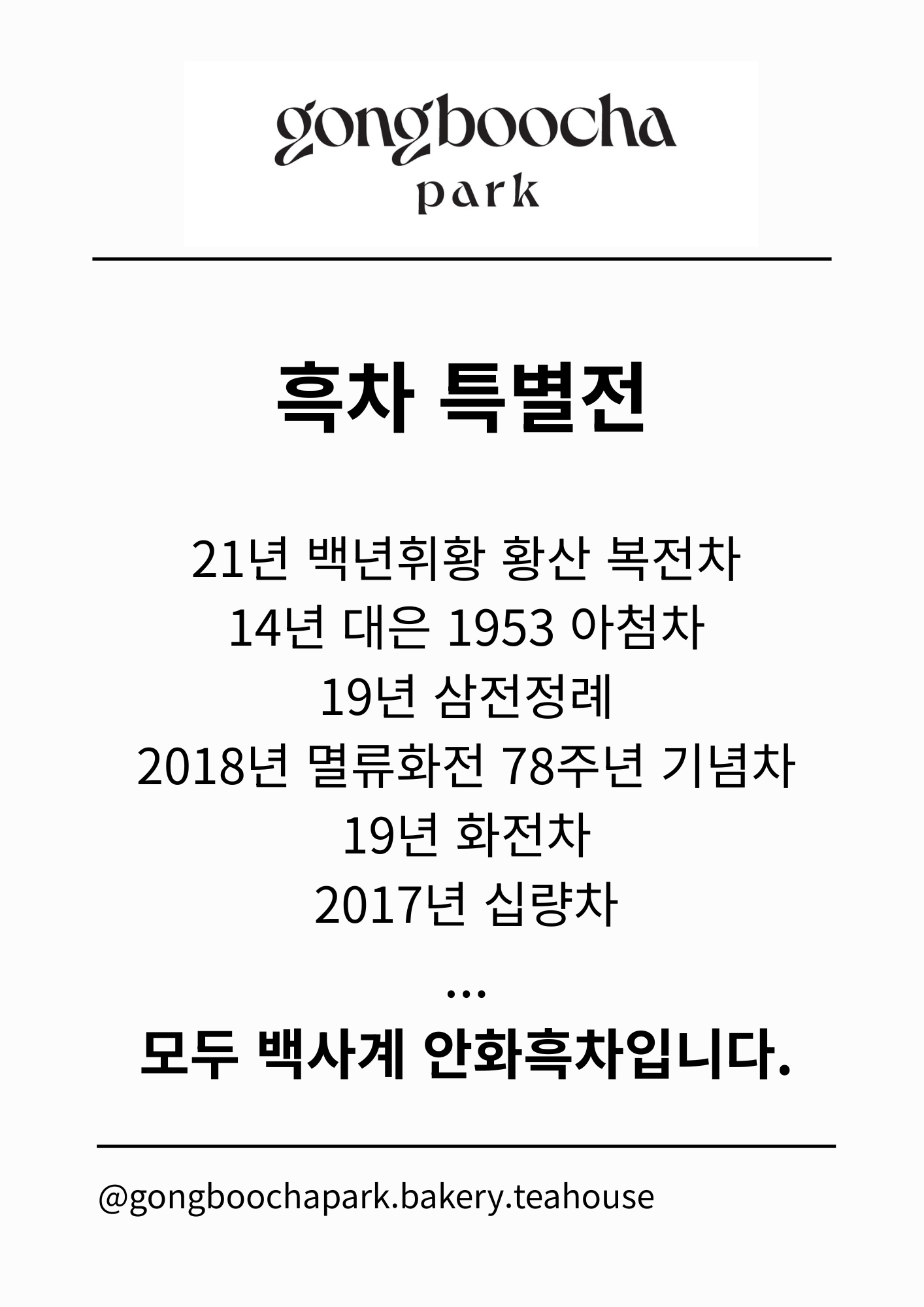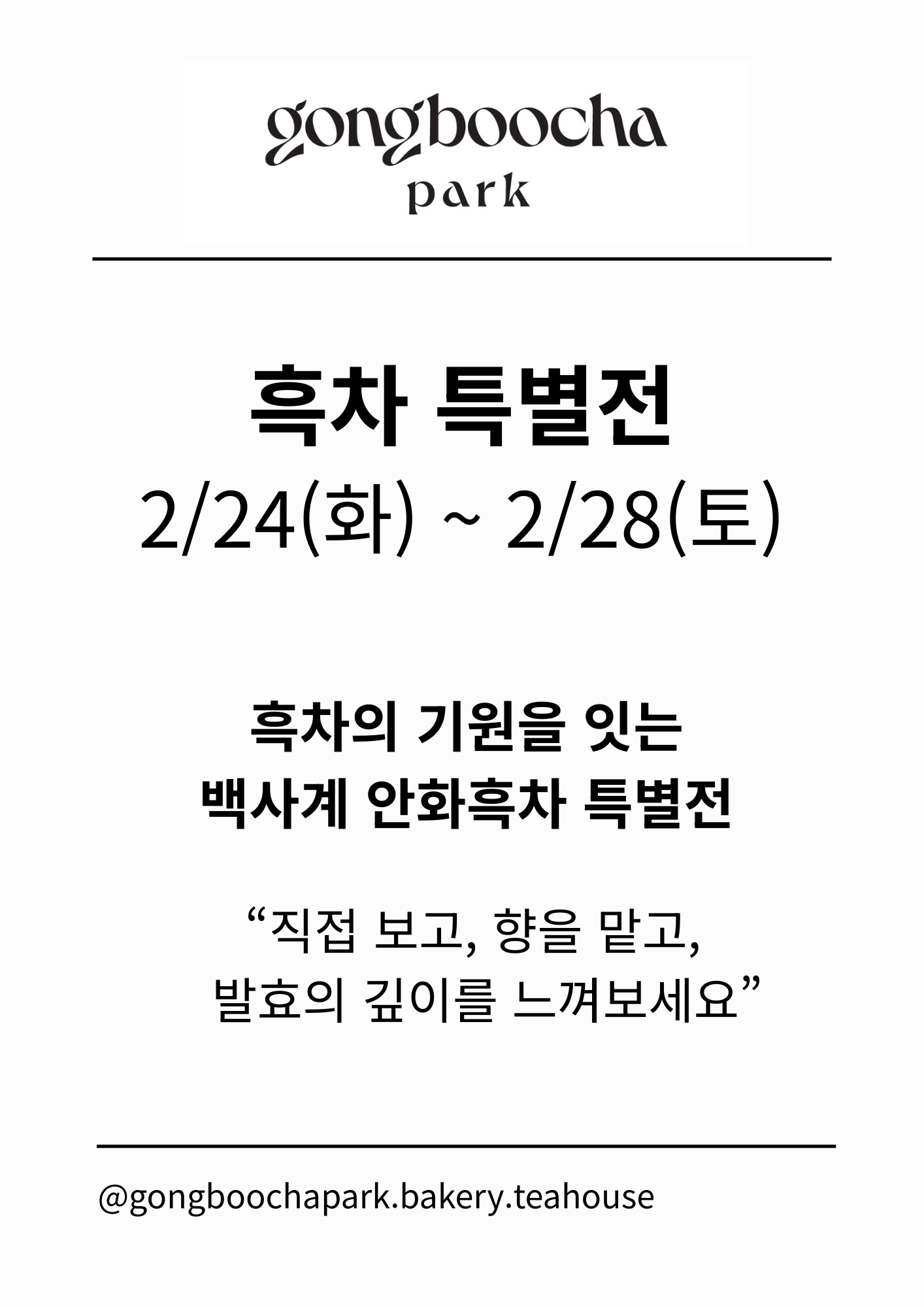 다회茶会 | [공부차 파크 과천_백사계 흑차 특별전]02/24(화)~02/28(토) 단 5일 간!