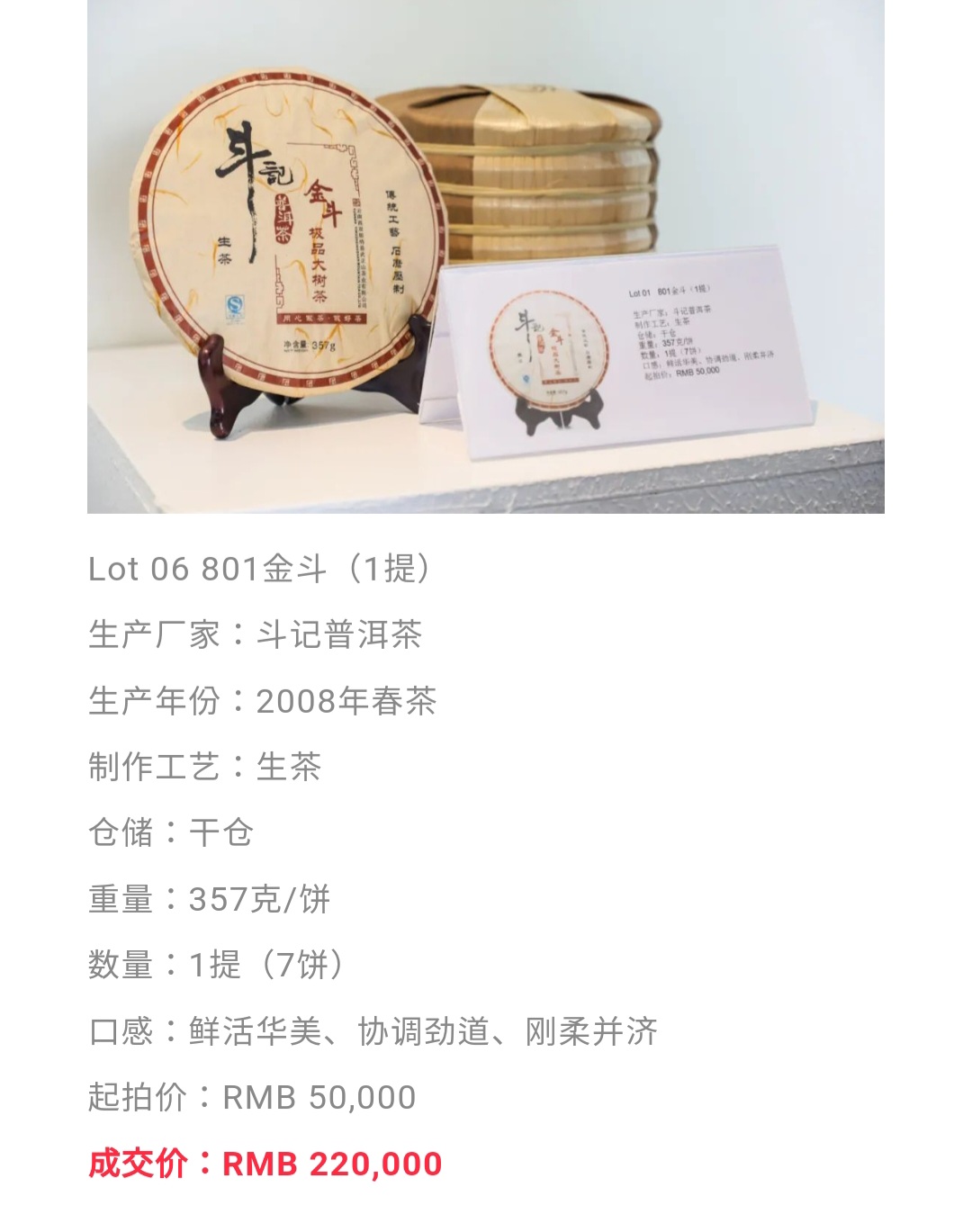 아래 사진은 두기 사치급 보이차를 공부하면서 우연하게 발견한 경매 자료를 올립니다.