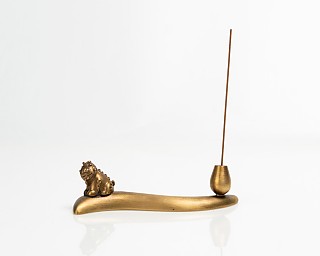 전수공으로 제작된 [공부차] 해태 황동 차시받침 겸 향꽂이의
