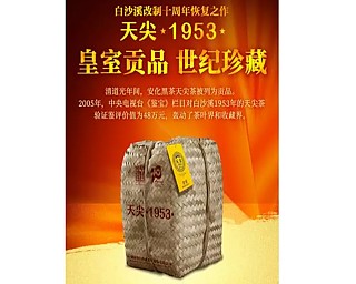 2005년 2월 14일, 중국 중앙텔레비전(CCTV) 《감보(鉴宝)》 프로그램에서 53년 전에 후난성 바이사시(白沙溪) 차창에서 생산된 톈젠차(天尖茶) 한 바구니에 대한 검증과 감정이 이루어졌습니다.