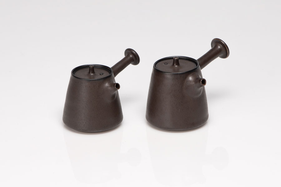 백자로 제작하여 흑매트로 유약이 발린 다관입니다.