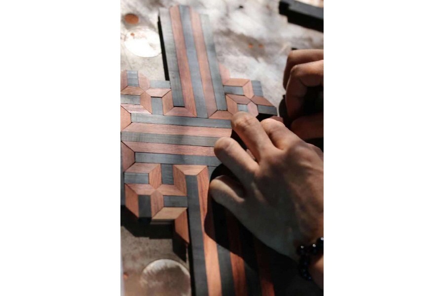 하나의 오차도 없이 재단하고 다듬어야 어느 조각도 들뜨지 않고 완벽한 형태가 완성되는데,