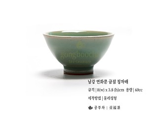 금박으로 인해 보는 즐거움 마시는 즐거움을 느끼기에 딱 좋은 연화문 청자 찻잔입니다.