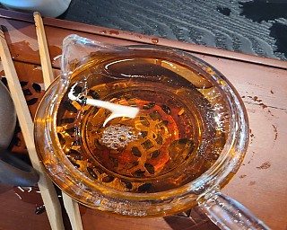 2탕째에는 연한 황금색을 띄며 꾸준하게 느껴지는 쌉싸름 하면서도 화향이 있으며 뒤에서오는 단맛과 감칠맛이 좋습니다.