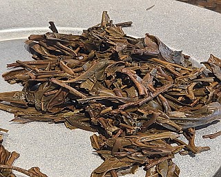 우리고 마신 후 식은 엽저에서는 풍선껌같은 달고 상큼한 향이 올라왔습니다.