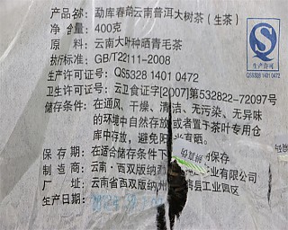 [빙도 대수차 병배] 2012년 맹고 춘운 대수 생차 400g 요약정보 및 구매