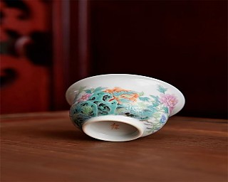 선명하고 농염한 모란과 태호석의 결합은 독특한 풍경을 이루어냅니다. 모란은 예로부터 많은 문인 묵객들의 필치에 오른 소재로, 태호석과 함께 부귀와 장수, 상서로움을 상징합니다. 그림은 4월 모란 꽃이 피는 생동감 있는 모습을 영감으로 삼아, 꽃잎과 나비의 배치에 주와 부를 두고 움직임과 고요함을 조화시켰습니다. 고전적이고 우아한 뚜껑 찻잔 형태는 선이 유려하여 손가락 사이에 편안히 잡히며, 손재주 있게 다루기 쉬워 데우지 않습니다. 다과석 위에 놓으면 자리를 더욱 빛내고 아름다움을 더해, 금상첨화와 같습니다. 시와 그림이 서로 어우러져 우아함이 자연스럽게 배어났습니다. '푸르름은 고요하고 붉은 옷은 엷었다 짙었다 한다'는 시구처럼, 정교한 세공으로 생생하게 구현되었으며, 아름답고 실용적이고 형태가 풍만하며 선이 매끄럽고 수제로 만들어졌습니다.