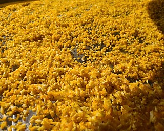 사진에서 보는 것처럼 강한 햇볕의 도움으로 최상급 유자진피차가 탄생합니다.