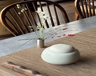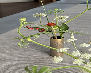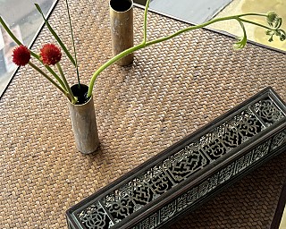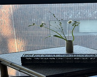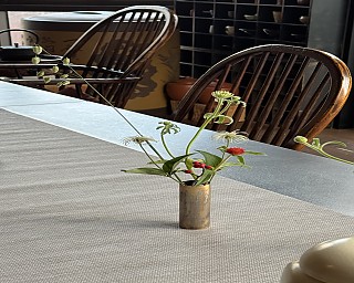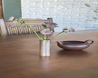 황동 위에 주석으로 무심한 멋을 낸 이종길 작가의 화병입니다. 크지 않고 아담한 원통 모양으로 찻자리 곁에 두는 어떤 식물이든 잘 어울리는 것 같습니다.