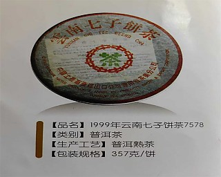 1999年海湾老同志7578熟茶饼 行内亦称:"水蓝印","苹果绿",“事業熟”,属于海湾茶厂初期代表经典作品,仓储干净,陈香老味,汤感顺滑甜